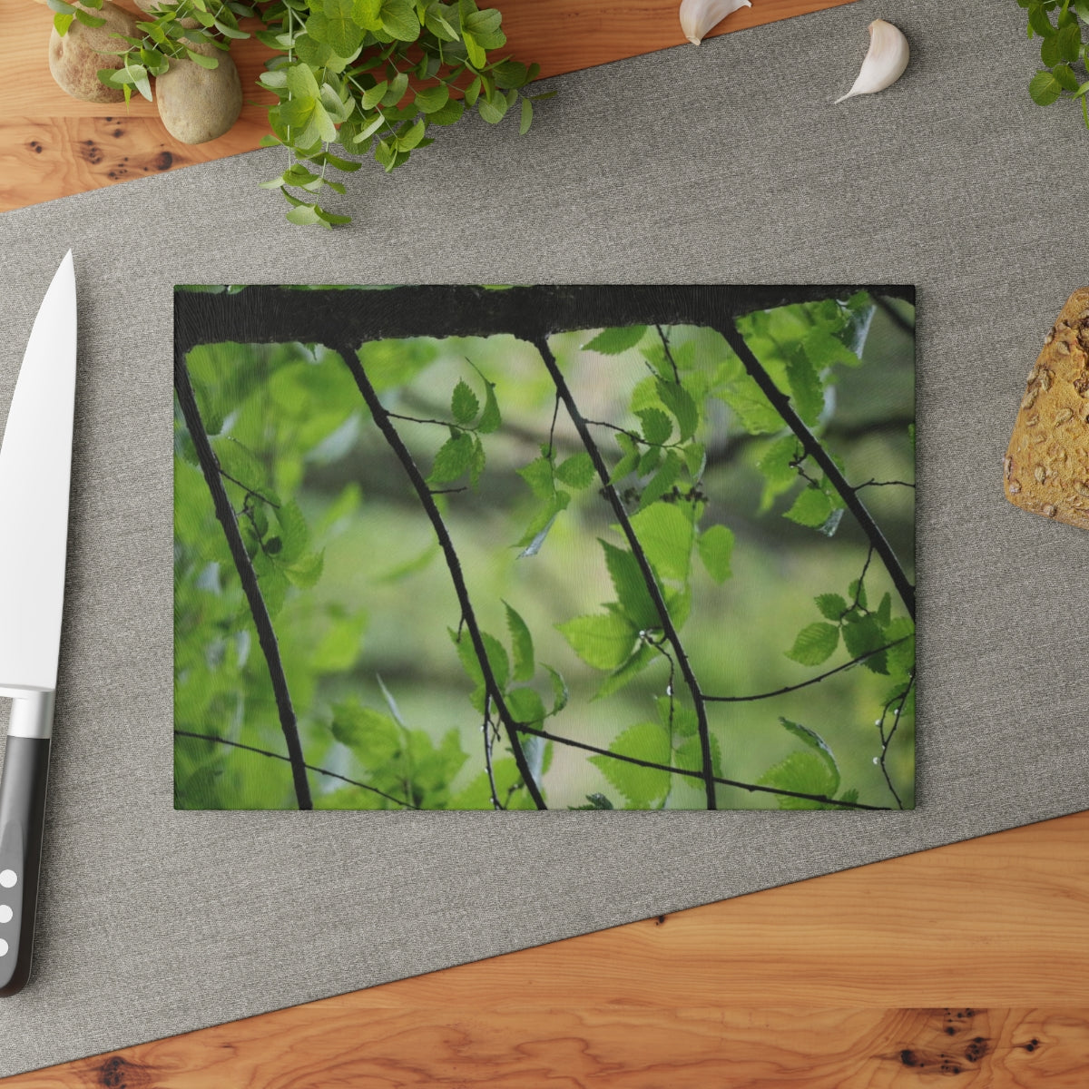 Bring a touch of the outdoors into any kitchen with this unique glass cutting board. Its tampered glass material is robust & helps prepare many a tasty meal for a long time to come. The textured surface makes it an ideal chopping, slicing & dicing area. Available in size 8" x 11".